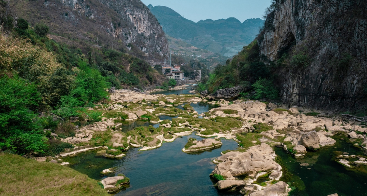 12:00 산길을 따라 관링 빙우(冰臼)로 이동, 다방허(打邦河) 원생태 계곡을 가로지르며 300만 년 빙하가 깎아낸 빙우 지형을 가까이에서 감상. 암벽의 빙하 문양을 만져보고, 다양한 형태의 석우(石臼) 연못 물을 관찰하며 지질학적 비밀을 풀어보세요. 길목마다 푸르른 계곡과 카르스트 절벽 풍경을 감상하며 걸으며 경치를 즐기고 사진 찍기.